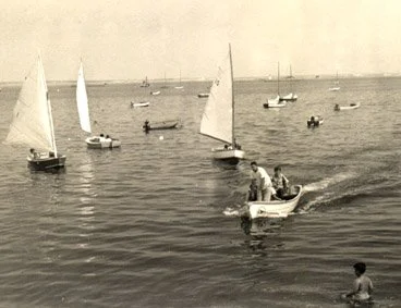 Begun in 1950 as a loosely organized gang of kids congregating at 'Flyer's beach', it soon became apparent to a number of parents that boats, a sailing program and a proper facility were needed. Francis Santos, Larry Richmond, Richard Santos, Frank Rogers, Joe Andrews, George F. Miller, Jr., Charles Shilowitz and Will Hurlbert joined together to solidify a common goal. To give kids on the Outer Cape an opportunity to learn how to sail and enrich their lives with nautical knowledge and boating experience. During the winters several handy fathers built small boats called 'Weasels' from kits and the fleet began to grow. Calling on the generosity of local artists, paintings, drawings and sculptures were donated and raffles were held raising enough money to buy the waterfront property where the organization is located to this day. On June 21, 1957 the building was completed by builder Joseph C. Patrick for the princely sum of $4,126.40. As the kids grew, so did the fleet with the addition of five Blue Jays built by Larry Richmond, Dick Santos and Lloyd Atwood.